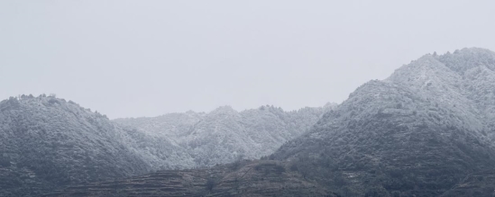 此次降雪于16日23时左右悄然降临,受境内南北高、中间低的地形影响,海拔412米的河谷平地与海拔1483.6米的月亮台主峰形成鲜明气候差异。雪势集中在海拔800米以上山区,流岭主脊、鹘岭支脉的山林间,松枝上积雪条条,红褐色的山茱萸枝条缀满雪粒,一片片宛如铺展的“雪后红珠图”。登高远眺,连绵山峦银装素裹,云雾在雪岭间流转雪山泛出微微白光,仙气飘飘。截至17日上午,山区累计降雪量达8毫米,积雪厚度普遍在5-10厘米,当地居民和外来旅客纷纷拿起相机拍起了美景。